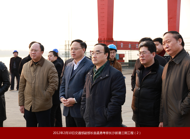 2012年2月10日,交通運輸部黨組副書記、副部長翁孟勇來長沙新港考察時強調(diào):長沙新港變化一次比一次大,當前要借助湖南加大水運發(fā)展力度的有利契機,加快樞紐、港口和湘江2000噸級航道提升建設(shè),更好地服務(wù)經(jīng)濟社會和航運的持續(xù)發(fā)展。 |